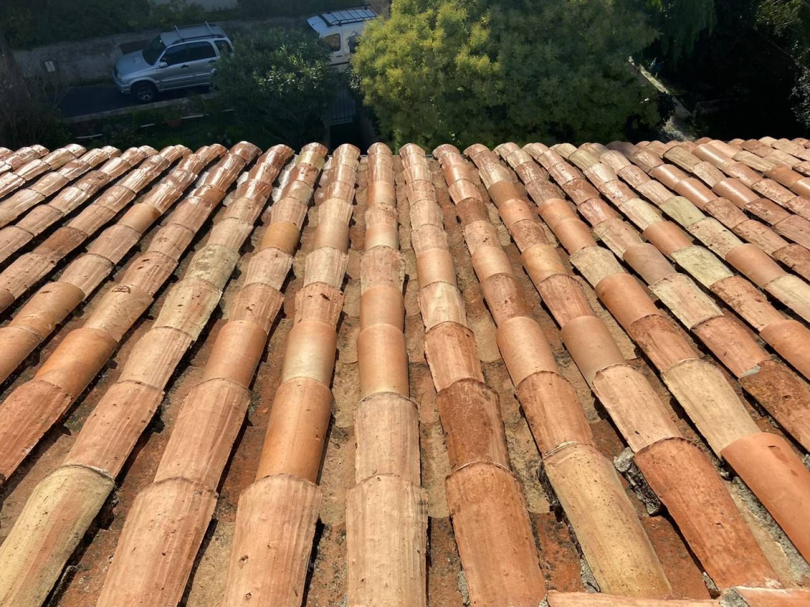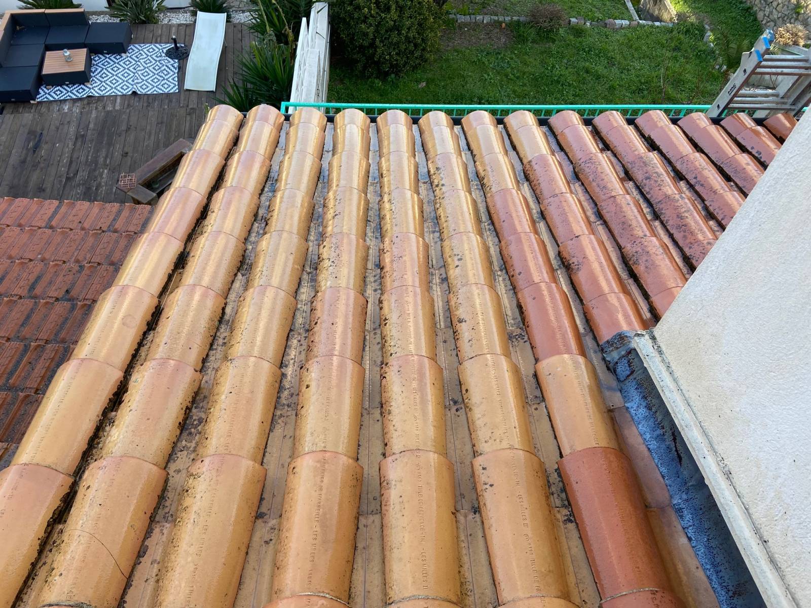 Nous sommes intervenus à Sanary pour nettoyer le toit devenu sale avec le temps et nous avons ensuite appliqué un hydrofuge incolore.
